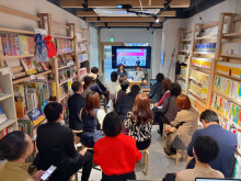店は1階と地下の2フロア。席数は、1階=14席、地下1階=16席。1階は空を連想させるハート型の飛行機雲などを壁面に描き、地下1階は海を思わせるカラーや絵画などで統一。女性の一人客でも入りやすい店舗デザインを意識したという。今後はランチだけでなく、カフェメニューの展開も検討する。「カレーと唐揚げを市谷の新しい名物として皆さんに認知してもらい、観光の際に巡ってもらえる場所の一つとなっていきたい。おいしいのはもちろん、店を通して幅広い客層の方に面白さや楽しさを感じてもらえれば」と笑顔を見せる。