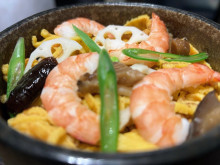 メニューは、ジョージア風シチュー「シュクメルリ」(1,900円)、スパイスを効かせたジョージア風ショウロンポウ「ヒンカリ」(3個、1,180円)などのほか、ジョージア発祥のチーズパン「ハチャプリ」や、伝統的な豆シチュー「ロビオ」などがセットになった「ゴビ」(2~3人分、9,500円)を用意する。ランチメニューは、「ロビアニ アチャルリ・ハチャプリセット」(1,600円)など。真下さんは「ジョージア料理は、ヨーロッパとアジアのエッセンスが融合した点が特徴。チーズやニンニクを使い、コクのある料理も多い。一部のハチャプリには、当店特製のジョージアチーズを使い、フレッシュなチーズ感を楽しんでいただけるようにした」とも。