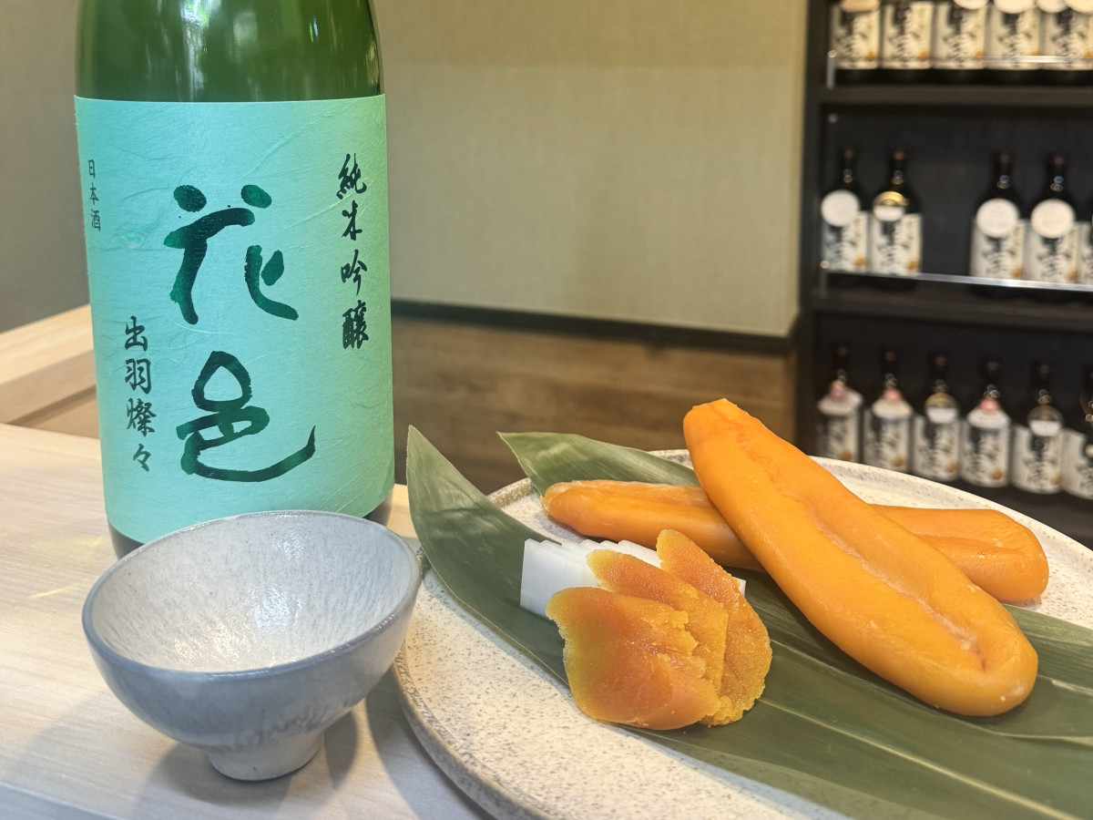 「日本酒ダイニング 恵」の日本酒とからすみ