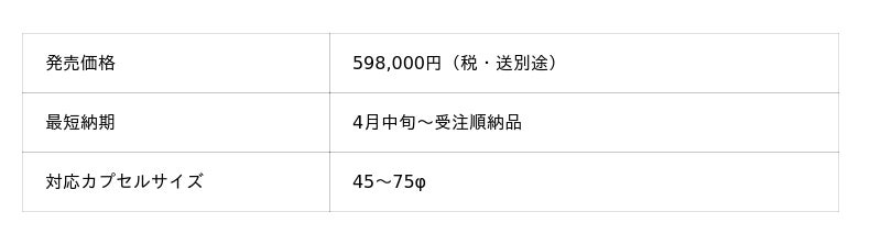 「お釣り機能」や「連続プレイ機能」を兼ね備え、1,000面前後の多台数化が増えてきたカプセルトイ売り場に最も適したマシンとなります。