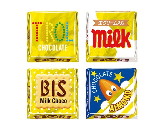 ほろにがでクセになる「コーヒーヌガー」、1990年の発売から生産量No.1で人気のなめらか食感の「ミルク」、サクサクの「ビス」やカリカリの「アーモンド」など人気の4種が入ったお得なBOXです。食感が違うので食べ飽きることなく楽しむことができます。